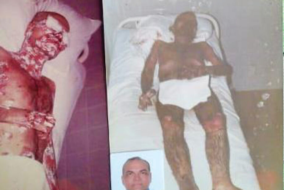 Pesava apenas 39 quilos e estava com a pele praticamente em carne viva, inclusive o rosto.