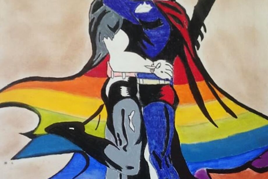O que era pra ser mais um desenho entre vários escolhidos para uma exposição em Poços de Caldas (MG) acabou causando polêmica nas redes sociais. A imagem, desenhada por um dos alunos do Instituto Federal do Sul de Minas, organizador da exposição, mostra o beijo de dois super-heróis - Batman e Super Homem. Ao fundo, as cores que representam a causa LGBT.