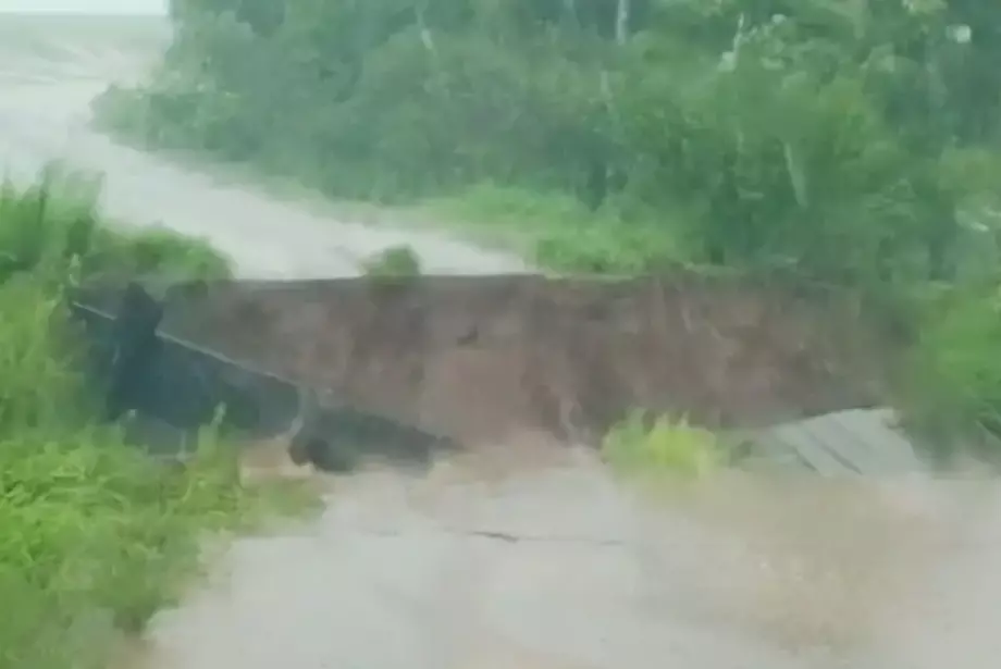 Em outro ponto do mesmo rio, uma ponte de concreto foi completamente carregada pelas águas. A estrutura dava acesso à Fazenda Itapuã e ao Assentamento Vicente de Paula e Silva.