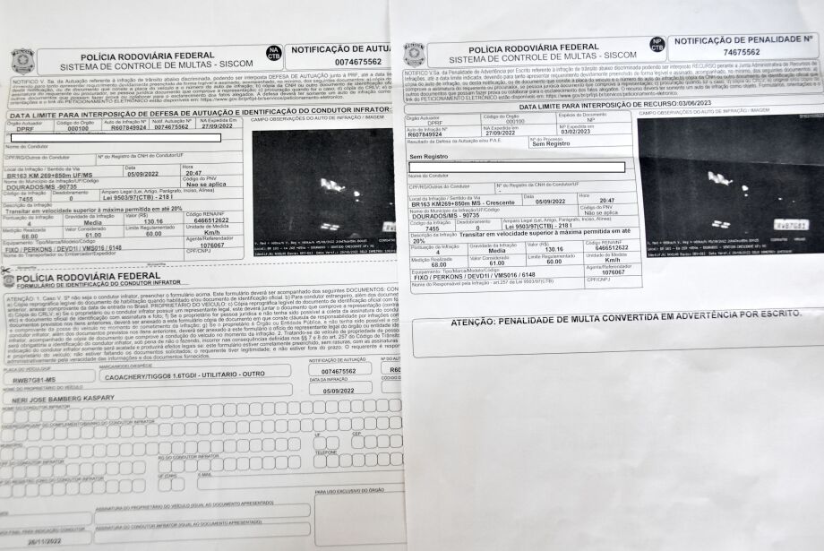 Meses depois de receber a notificação de multa, o proprietário recebeu duas notificações informando que a multa havia sido convertida em advertência por escrito.