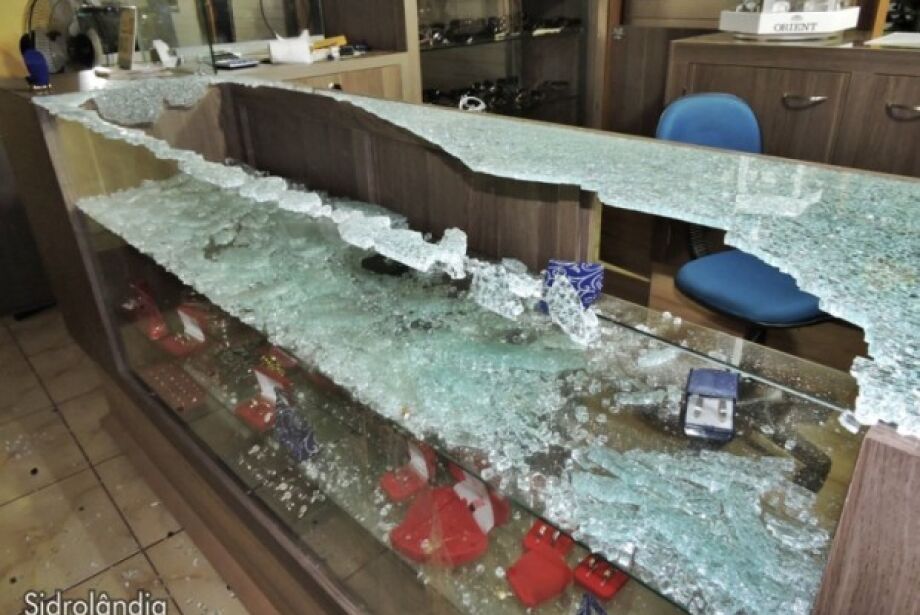 Quatro suspeitos fugiram depois de roubar uma joalheria na madrugada de hoje, no centro de Sidrolândia. Quadrilha levou um cofre e diversas joias, causando prejuízo de R$ 100 mil para os proprietários do estabelecimento. A ação durou menos de 2 minutos.