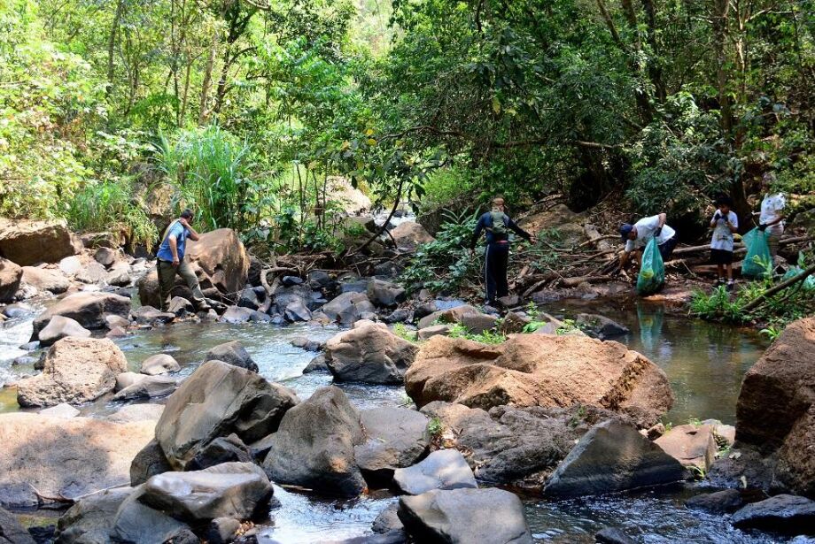 Conforme a empresa Revolução Ambiental, uma das organizadoras da ação, 105 voluntários percorreram as cachoeiras do Céuzinho, do Inferninho e da Macumba, além de terrenos na região.