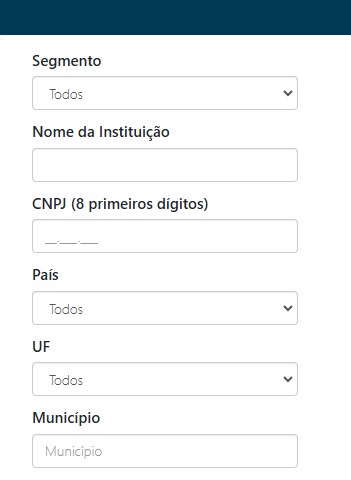 • Pesquisando por segmento: Se for pesquisar por "Segmento", preencha também outros campos da busca. Caso contrário, o sistema pode retornar mais de 1000 instituições/dependências.