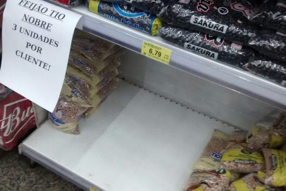 Para evitar que o alimento desaparecesse das gôndolas, o estabelecimento preferiu limitar a quantidade por compra. Outra opção para quem quiser consumir o grão e pagar menos é o feijão preto, que neste mesmo mercado custa R$ 6,79.
