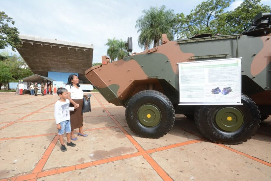 Neste sábado (13), na Praça do Rádio Clube, região central da Capital, está em exposição de material de emprego militar.