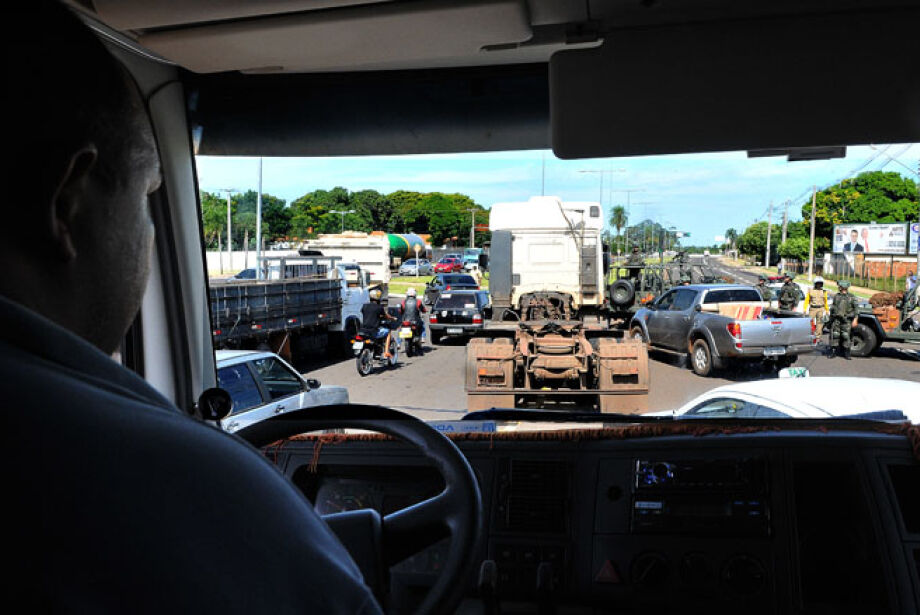 Militares do Exército Brasileiro e equipes da Agência Municipal de Transporte e Trânsito (Agetran) barraram pelo menos 15 caminhoneiros, que seguiam para protestar em visita da presidente Dilma Rousseff na Capital.