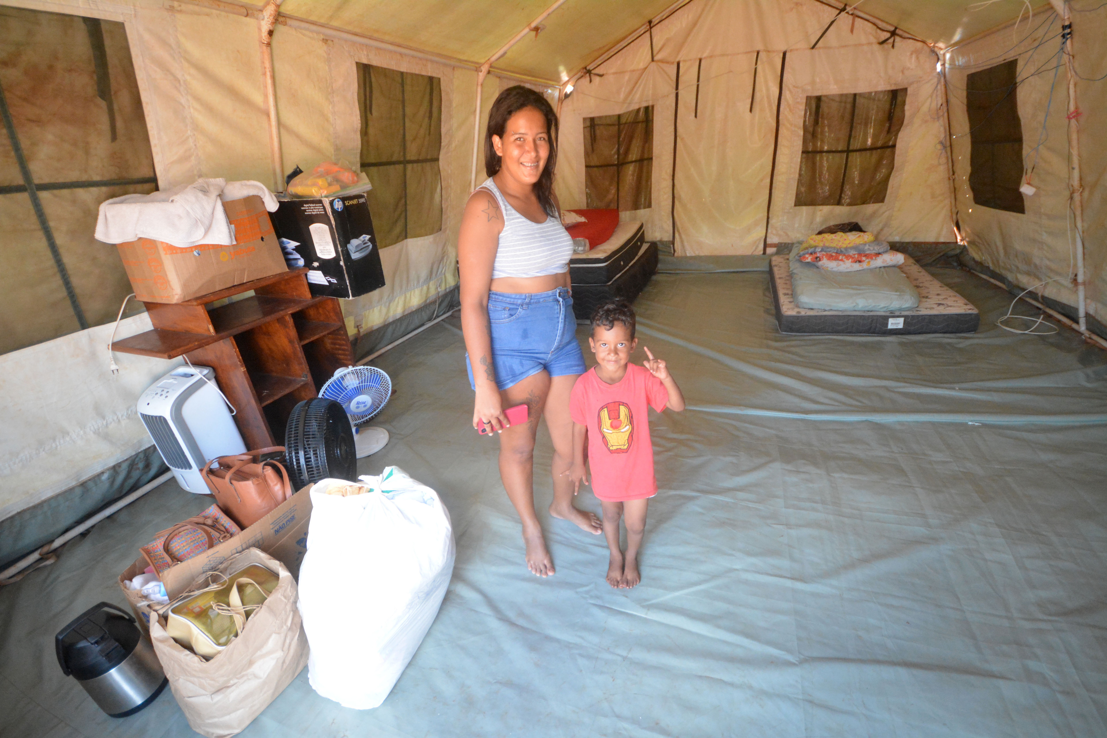 Moradora da Comunidade do Mandela, Kellen Ketlen Lopes, de 23 anos, irá se mudar para o abrigo da escola com seus três filhos.