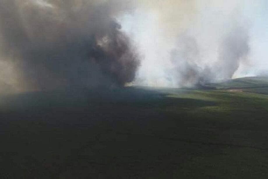 Imagens aéreas feitas a partir de um drone no meio da tarde de hoje dão a dimensão de um incêndio que dura mais cinco horas na região de Ribas do Rio Pardo. O fogo começou na fazenda Boi Preto, que neste ano foi alvo da Operação Greenfield, da Polícia Federal, que investiga os irmãos Joesley e Wesley Batista.