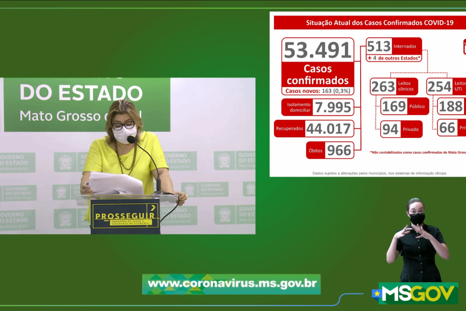 Por isso, Mato Grosso do Sul contabilizou 966 óbitos, mas poderia ultrapassar a marca de mil mortes pelo coronavírus, o que deve acontecer durante a semana. Foram confirmados mais 163 casos, chegando à 53.491 registros da doença. Em comparação com o boletim divulgado ontem, mais 13 mortes foram confirmadas.