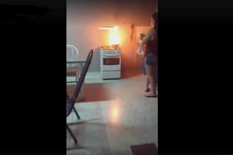 Situação que pode acontecer em qualquer cozinha, incêndio em uma panela com óleo quente serviu como base para a 2º sargento do Corpo de Bombeiros de Mato Grosso do Sul, Patrícia Sabioni, gravar vídeo com orientações sobre como agir nesses casos.