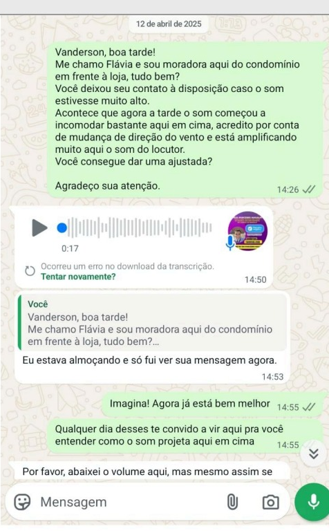 Para embasar a reclamação, foi encaminhado também 17 vídeos gravados de dentro de seu apartamento. Por fim, registrou boletim de ocorrência na Polícia Civil e uma queixa formal na Secretaria Municipal de Meio Ambiente e Desenvolvimento Urbano (Semadur).