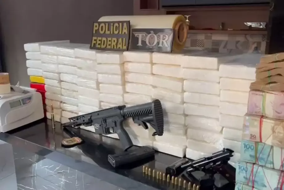 Após verificação, foram encontrados vários tabletes de substância análoga à cocaína, que somaram 88,5 kg da droga, uma enorme quantidade de dinheiro nacional em espécie, totalizando R$ 1.722.785,00, além de um fuzil Colt cal. 556, e uma pistola cal. 380, com 15 munições intactas.