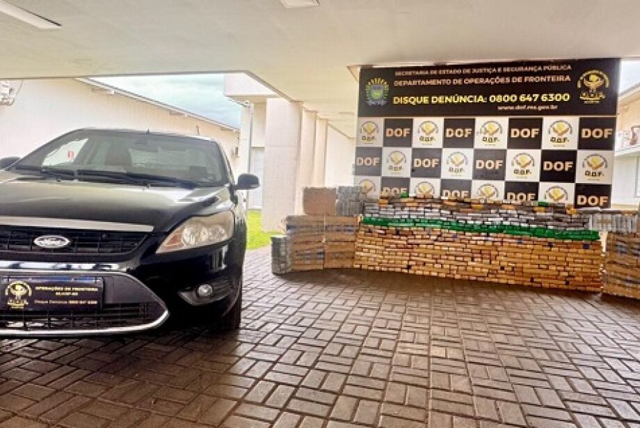 Um homem de 42 anos com um mandado de prisão em aberto foi preso nesta segunda-feira (29) por policiais militares do Departamento de Operações de Fronteira (DOF) por transportar 721 quilos de maconha em um veículo Ford Focus, roubado no estado de São Paulo.