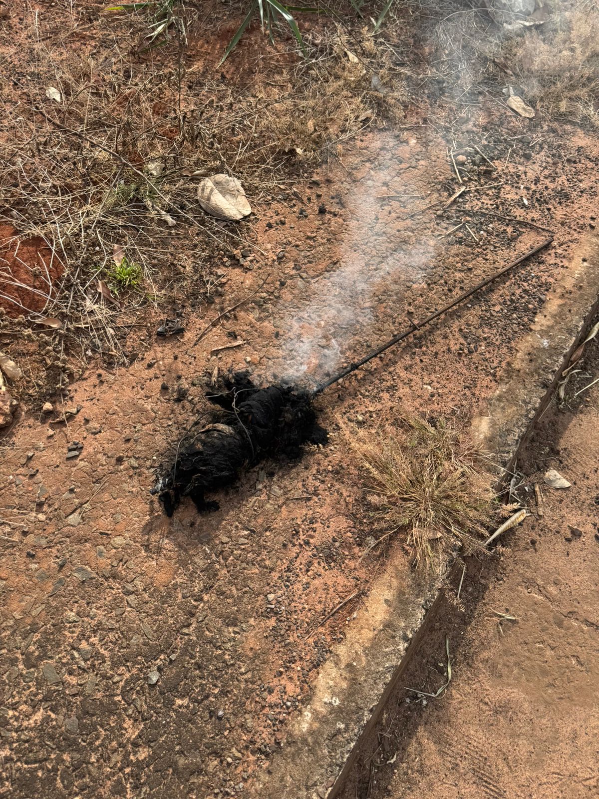 Os bombeiros identificaram uma tocha improvisada, com um pedaço de madeira e panos com fogo, que acreditam ser o que iniciou o incêndio.