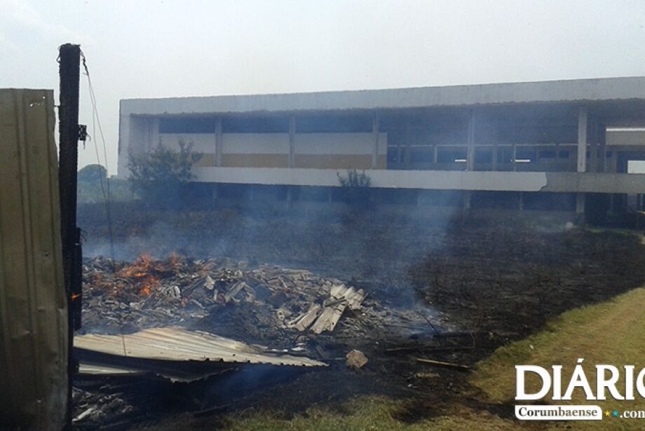 Um incêndio de grande proporção atingiu a área do prédio em construção da sede do IFMS (Instituto Federal de Mato Grosso do Sul) localizado no bairro Popular Velha, em Corumbá, distante 444 km de Campo Grande, nesta sexta-feira (23). As chamas consumiram quase toda a vegetação que fica no entorno do prédio, destruindo também uma estrutura de madeira, que funcionava como depósito de materiais. Quatro viaturas do Corpo de Bombeiros, uma equipe do PrevFogo e uma pá carregadeira participaram da ação de contenção das chamas.