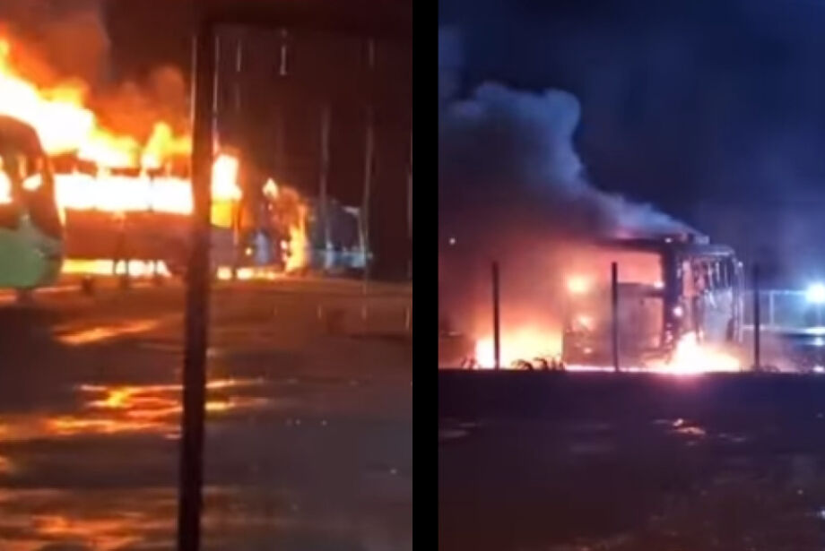 Incêndio destruiu dois ônibus, na madrugada desta segunda-feira (27), em uma garagem localizada em Sidrolândia, município situado a 60 quilômetros de Campo Grande.