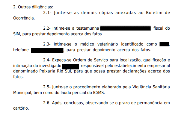"Além de estarem sendo manipulados de forma precária e sem selo de inspeção (SIM) e, além disso, também foram constatadas outras irregularidades, já que o local onde são realizados o armazenamento e a produção estariam em condições precárias, com sujidade, mau cheiro e equipamentos enferrujados, bem como os produtos estariam sendo vendidos sem as informações necessárias, como data de validade, composição, peso, entre outras informações, assim como não havia o selo de inspeção do SIM,bem como não foram apresentadas as notas fiscais, não se comprovando, desta forma, a origem dos produtos, razão pela qual os mesmos seriam considerados impróprios ao consumo humano", consta no inquérito.