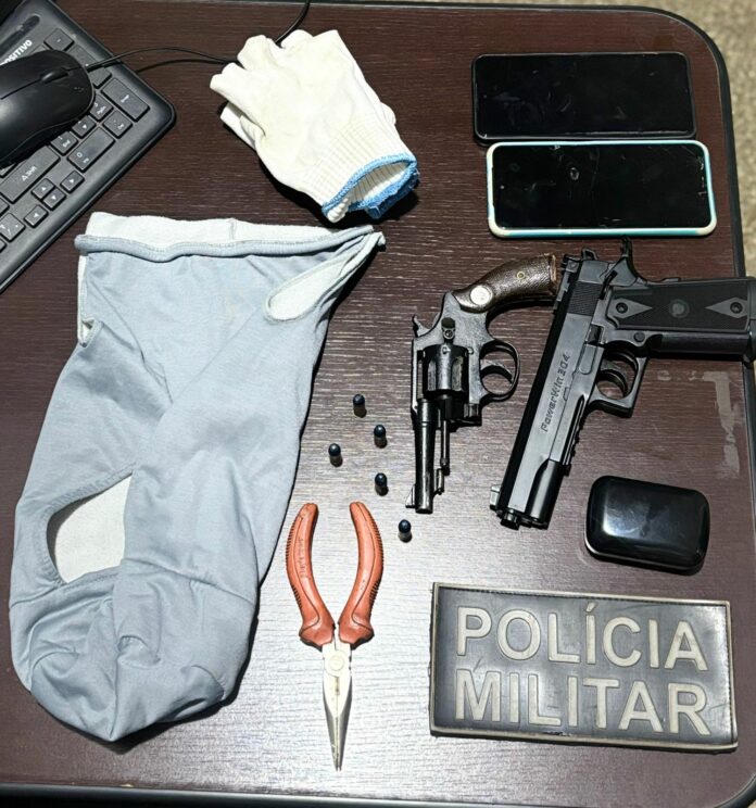 PMs apreenderam uma série de objetos utilizados pela dupla durante o assalto ocorrido em Selvíria