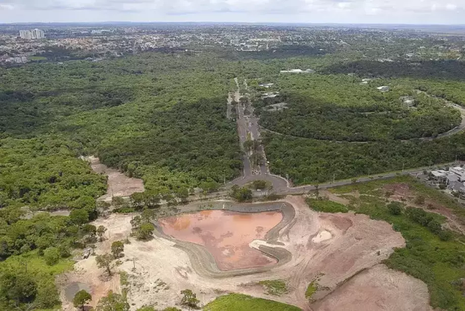 O piscinão, que recebeu investimentos de R$ 4,7 milhões em 2022, foi construído para conter a erosão na região da nascente do córrego Joaquim Português. A enxurrada que começava naquela região acabou levando milhares de toneladas de terra para o lago do Parque das Nações Indígenas.