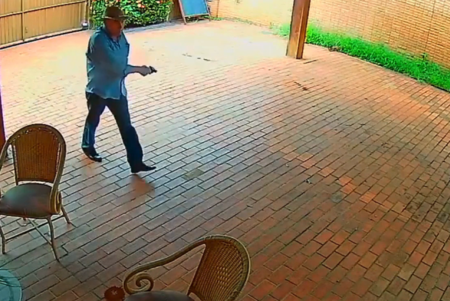 Às 13h44min20s daquele dia o vídeo mostra que Alcides Bernal chegou à frente da casa, após ser avisado pela equipe de monitoramento da empresa New Line de que teriam invadido a residência.