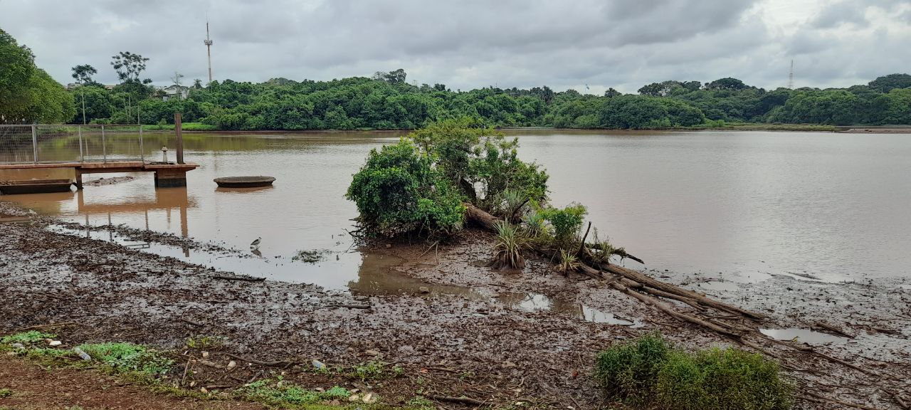 Fortes chuvas registradas na segunda-feira (04) elevaram o nível d'água do Lago do Amor, entretanto, se antes era comum esperar um transbordamento por cima da Sen. Filinto Müler, quem passou na avenida na manhã de hoje (05) viu um cenário bem diferente e um lago quase seco.