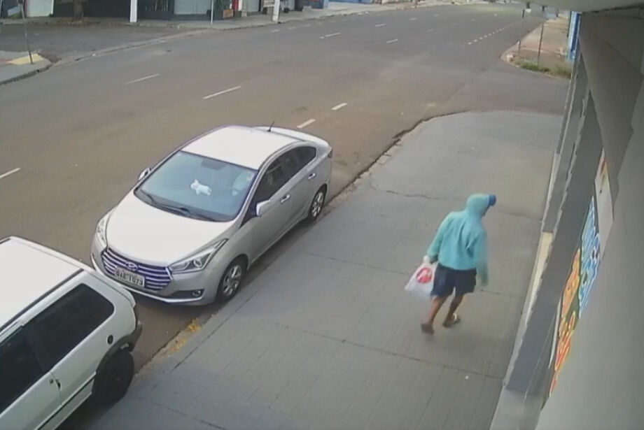 Em filmagem da câmera do estabelecimento enviada à reportagem, é possível ver que o furtante passa em frente, observando o local e ao redor para ver se tinha alguém por perto. O homem vira a esquina e depois de 25 segundo retorna a frente da porta de entrada e atira contra ela algo que quebra o vidro. Após quase 30 segundos, o suspeito deixa o local correndo.