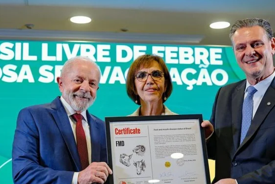 O presidente da República, Luiz Inácio Lula da Silva, recebeu nesta sexta-feira, 6, em Paris, o reconhecimento oficial da Organização Mundial de Saúde Animal (OMSA) de que o Brasil é um país livre de febre aftosa sem vacinação.