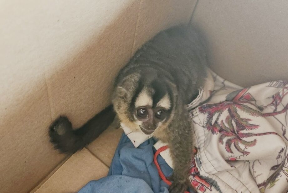 Macaco-da-noite é socorrido por morador após tomar choque na rede elétrica