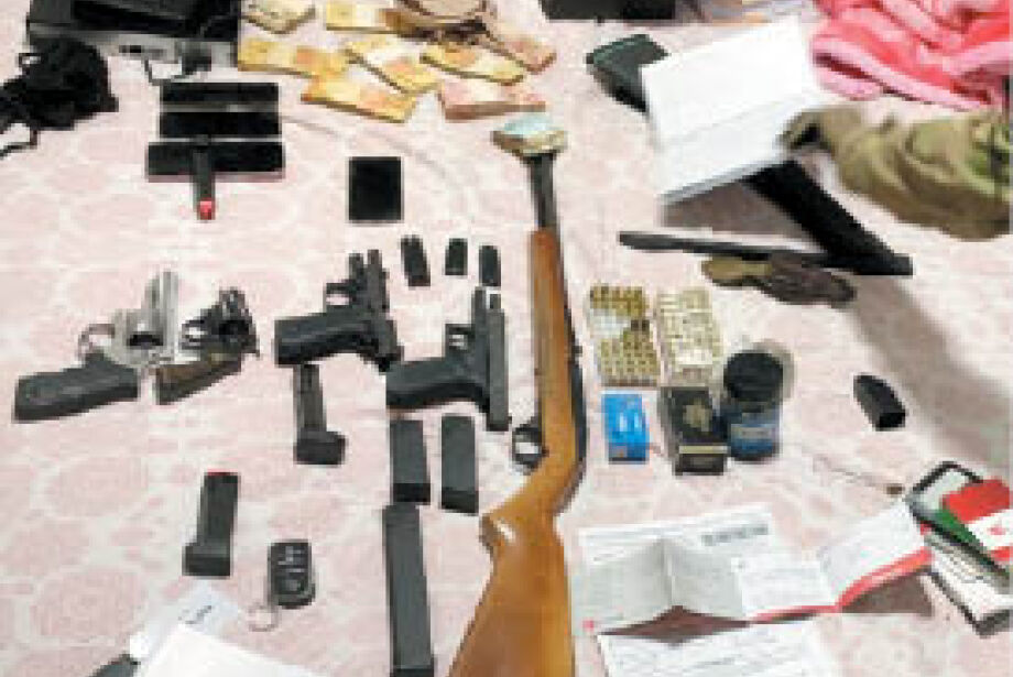 O indivíduo, que tem passagens por tráfico e estava em liberdade condicional, foi encontrado com diversas armas de fogo, entre elas um revólver S&W calibre .32, um revólver Taurus calibre .38, uma pistola Taurus calibre .380; uma pistola Glock calibre 9mm, uma carabina calibre .22, uma espingarda de pressão, diversos carregadores e inúmeras munições de diversos calibres.