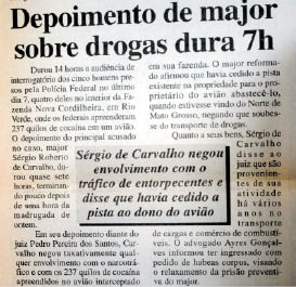 A chamada rota pantaneira, que leva a droga da Bolívia por Corumbá, passando também por Rio Negro e Rio Verde de Mato Grosso, já era utilizada em novembro de 1997, quando a Polícia Federal conseguiu apreender quase 250 kg de cocaína no interior da Fazenda Santa Therezinha, de propriedade de major Carvalho, no município de Rio Verde.