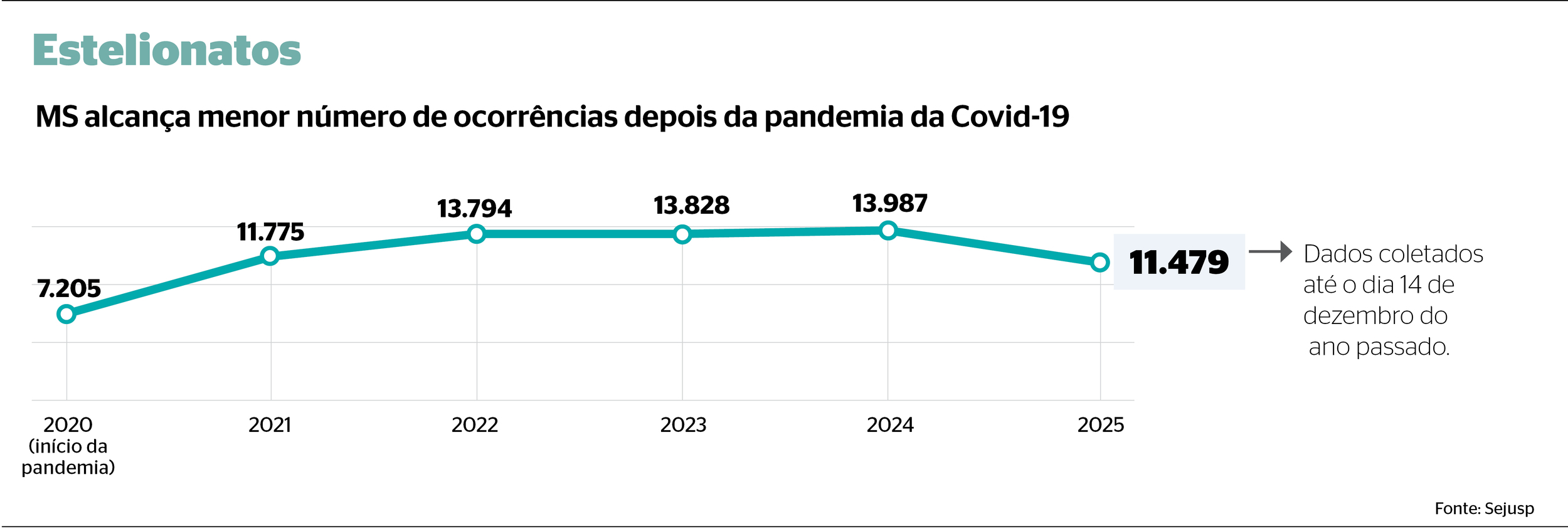 Os casos de estelionato tiveram um boom no Estado durante a pandemia da Covid-19, e se mantiveram em alta depois dela. Por exemplo, no início da pandemia, em 2020, Mato Grosso do Sul registrou 7.205 casos e, de 2016 a 2019, variou de 3,6 mil a 5,2 mil casos por ano.