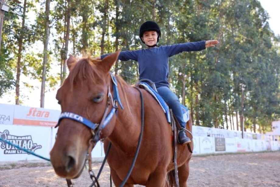 E, claro, segue apaixonado pelos cavalos da equoterapia.