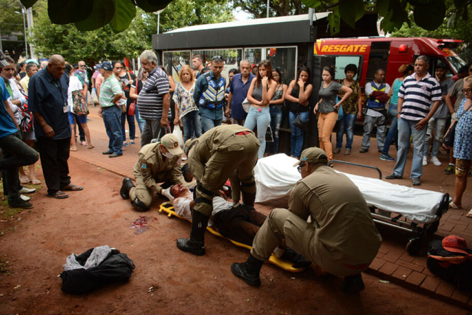 Morador de rua de 39 anos foi agredido com pauladas na cabeça, na manhã de hoje, em frente a praça Ary Coelho,  na Avenida Afonso Pena, esquina com a Rua Quatorze de Julho, região central de Campo Grande. Crime ocorreu depois que o morador mostrou o órgão genital para as pessoas que passavam pela praça, e provocou um casal do movimento hippie.