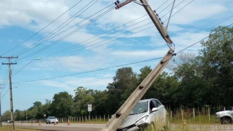 Com o impacto, o veículo ficou atravessado na pista e a estrutura do poste de energia quebrou. Uma equipe da concessionária precisou ir até o local devido à parte da região apresentar oscilação no fornecimento.