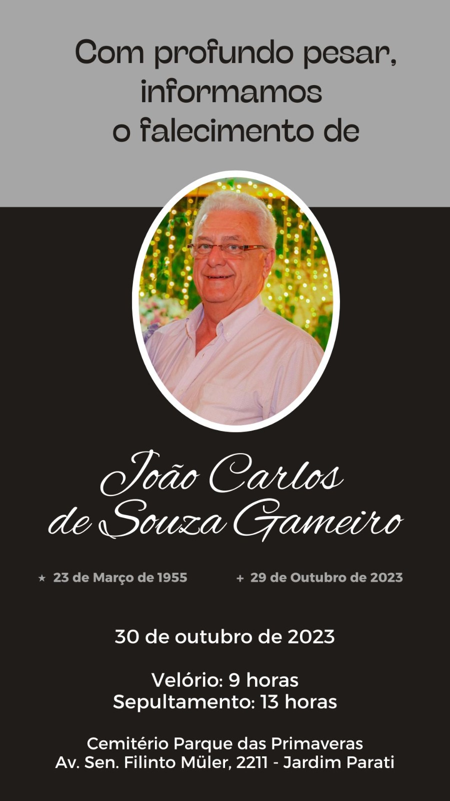 Morreu neste domingo, em Campo Grande, o engenheiro civil e empresário João Carlos de Souza Gameiro, aos 68 anos.