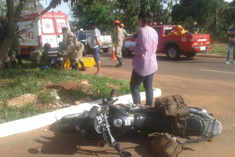 Motociclista fica ferido em acidente na avenida Hiroshima