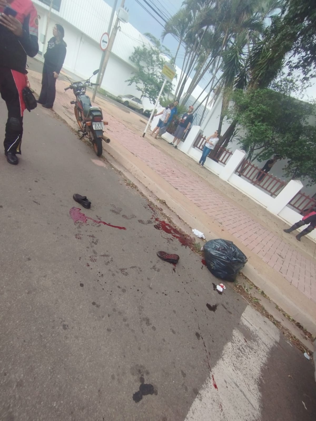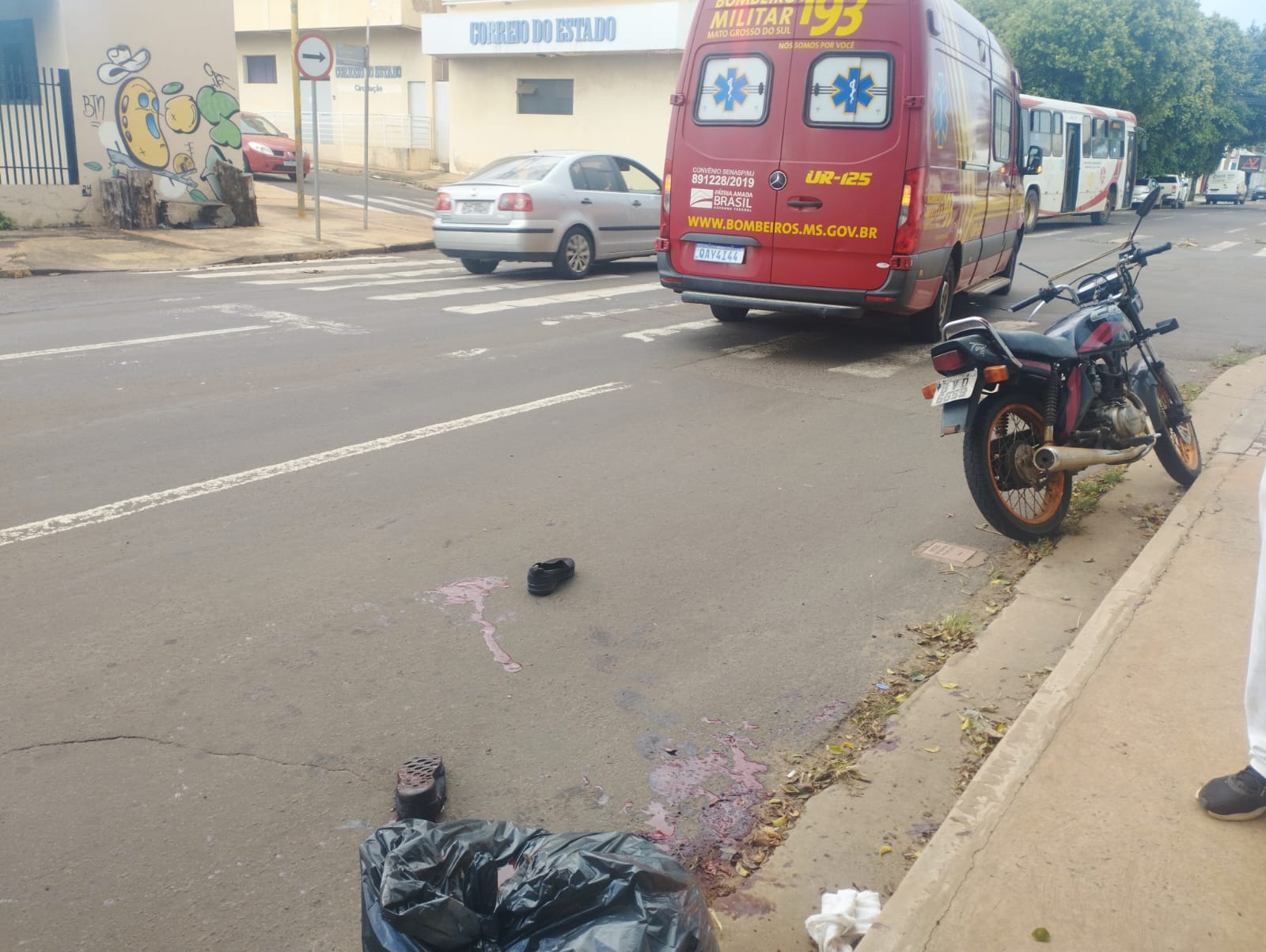 Ferido nas pernas, e socorrido pelo Corpo de Bombeiros, o motociclista recebeu os primeiros atendimentos ainda no local do acidente. Os calaçados do motoqueiro ficaram no meio da via, que não precisou ser interditada por completo.
