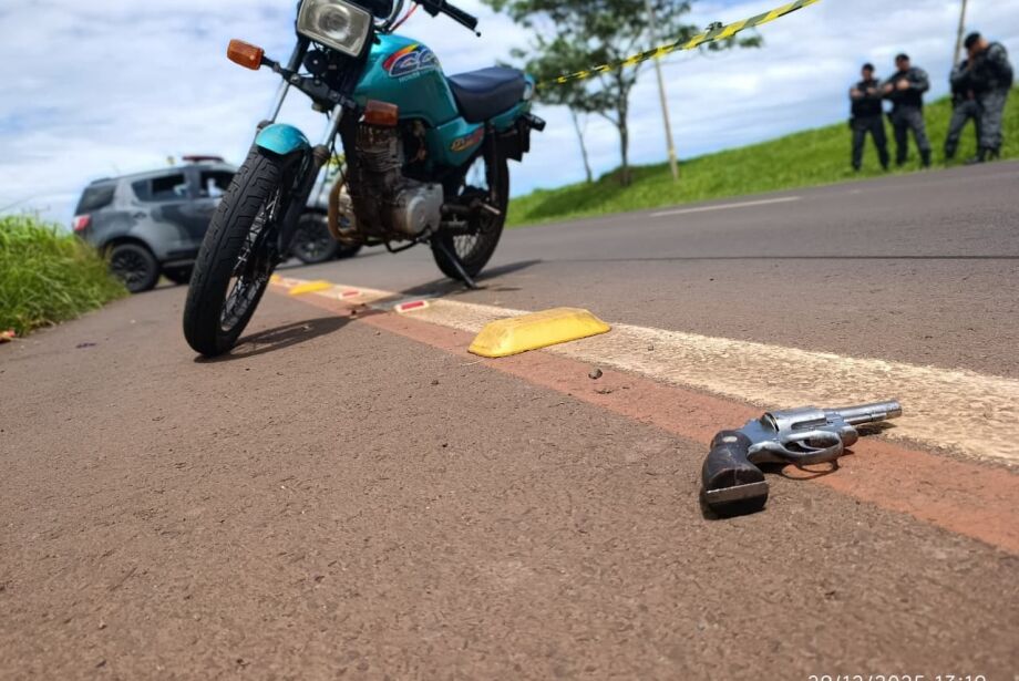 Local foi isolado. Foto: divulgação/BPMChoqueCom isso, deram voz de parada e abordagem. Mas, de acordo com o BPMChoque, o rapaz desobedeceu, desceu da moto e sacou uma arma.