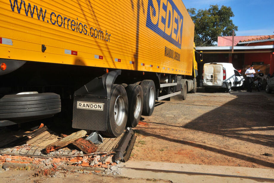 Edegar Alves da Silva, de 34 anos, passou mal enquanto dirigia carreta dos Correios que fazia entrega sedex e veículo invadiu Marmoraria Multi Pedras. Acidente aconteceu hoje de manhã no cruzamento da Avenida Mascarenhas de Moraes com Rua São João Bosco, Bairro Monte Castelo, em Campo Grande.