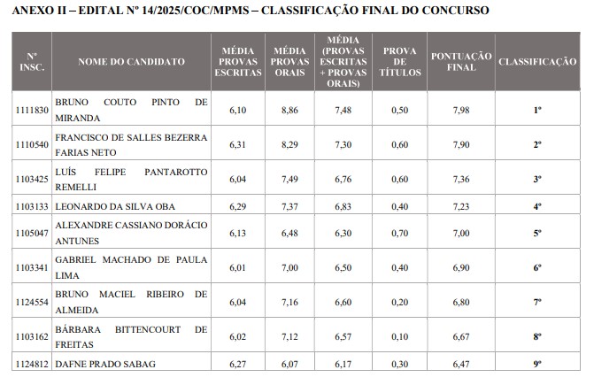 Divulgado o resultado no diário oficial do Ministério Público de Mato Grosso do Sul (MPMS) desta segunda-feira (27), o concurso encerrou com a 7ª fase de Investigação social e análise da vida pregressa, além da Prova de Títulos, somando a nota de todas as etapas.