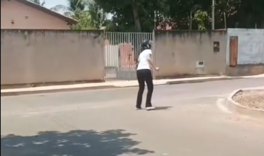 Karoline Macedo, de 29 anos, gravou um vídeo mostrando que o “PARE”, que deveria estar na esquina/cruzamento, está no meio da quadra, o que é incomum e fora dos padrões do Código de Trânsito Brasileiro.