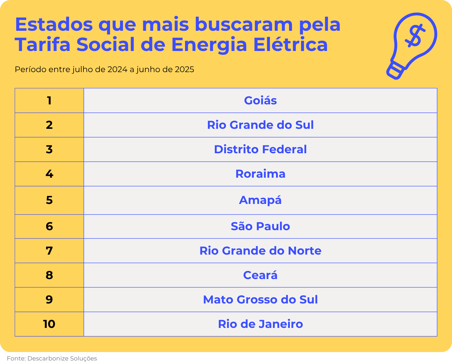 Um estudo desenvolvido pela empresa Descarbonize Soluções revelou os estados brasileiros onde mais se pesquisou pela nova Tarifa Social e como ter direito ao benefício.