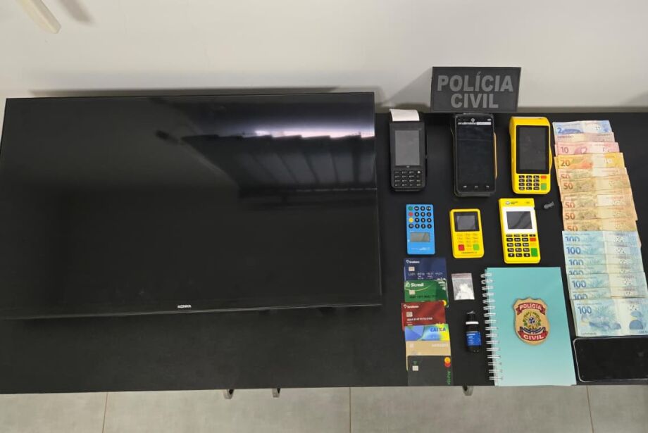 Na casa em que elas estavam, a polícia apreendeu cartões de crédito de terceiros, um caderno com dados bancários de várias vítimas, cocaína, seis máquinas de cartão, diversas notas de dinheiro em espécie e um aparelho de televisão sem procedência comprovada.