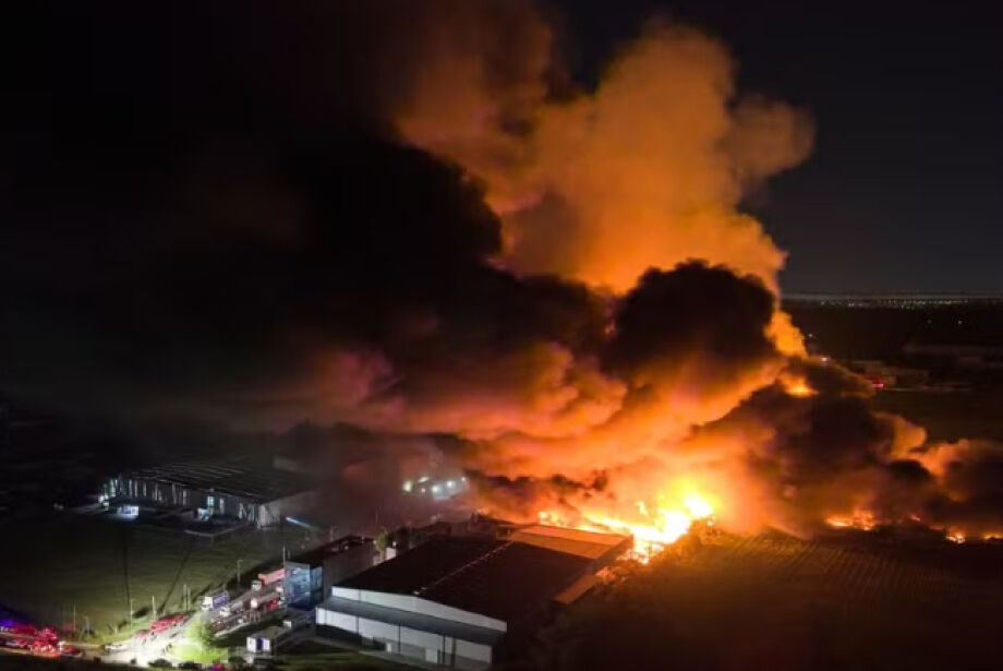 Antes mesmo da explosão acontecer, um incêndio já tomava conta de uma parte do complexo industrial.