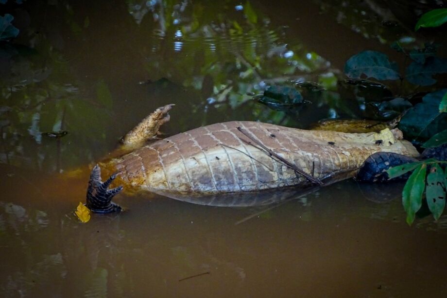 Na madrugada de hoje (7), militares retornaram ao local e encontraram três jacarés abatidos em estado avançado de putrefação, com apenas a cauda cortada. Os policiais fizeram ocorrência e encaminharão os autos à Polícia Civil, responsável pela investigação do crime.