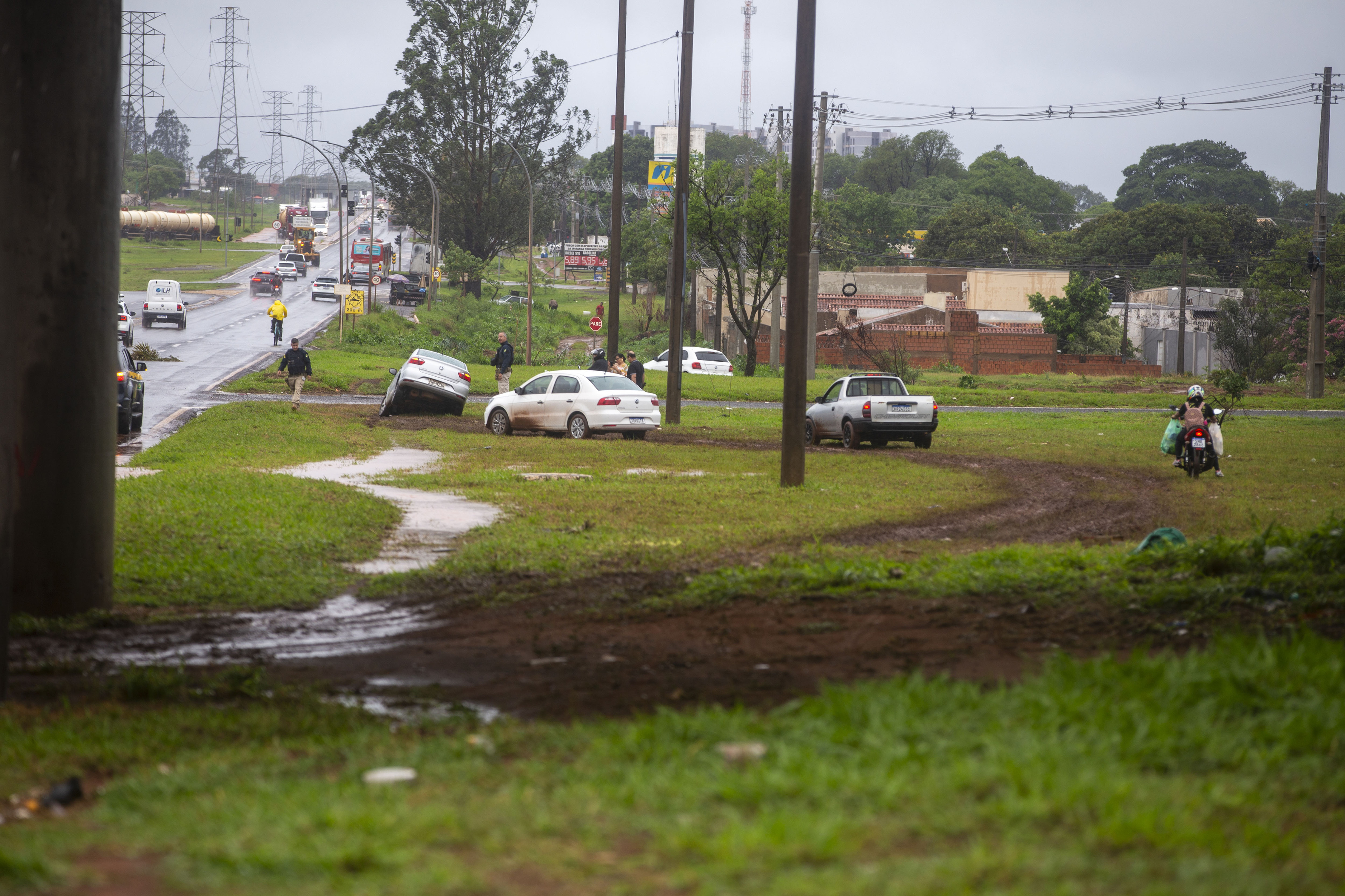 No anel viário da BR-262, por exemplo, a enxurrada forçou motoristas a se aventurarem pelo gramado, o que resultou em pelo menos seis carros atolados embaixo do viaduto na saída para Três Lagoas.