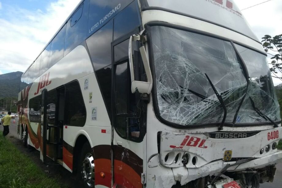 O ônibus, com 21 passageiros, acertou o primeiro carro no km 667 e só conseguiu parar no km 676.