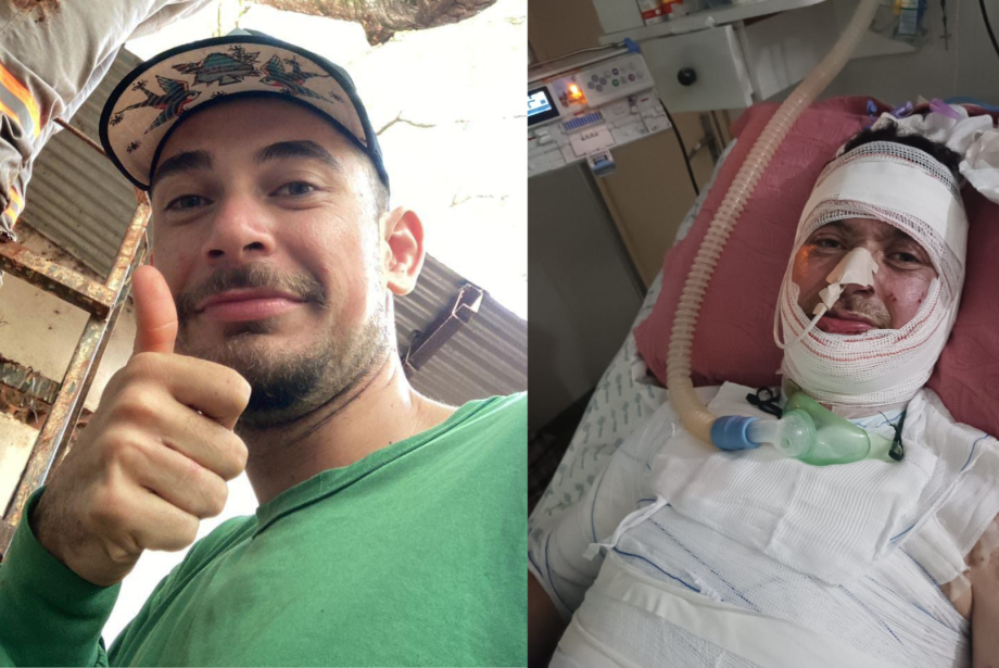 A esposa, Rarielen dos Santos, de 25 anos, contou que Geovane, que trabalha na área da construção, sofreu queimaduras em 28% do tórax e nas vias aéreas ao tentar mexer com uma chapa de churrasco.