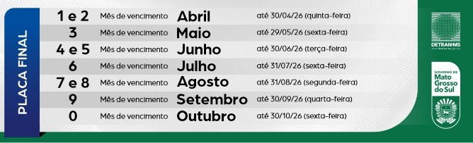 O pagamento do licenciamento de veículos começou neste mês em Mato Grosso do Sul. O calendário para o ano de 2026 foi divulgado pelo Departamento Estadual de Trânsito de Mato Grosso do Sul (Detran-MS) no início do ano.