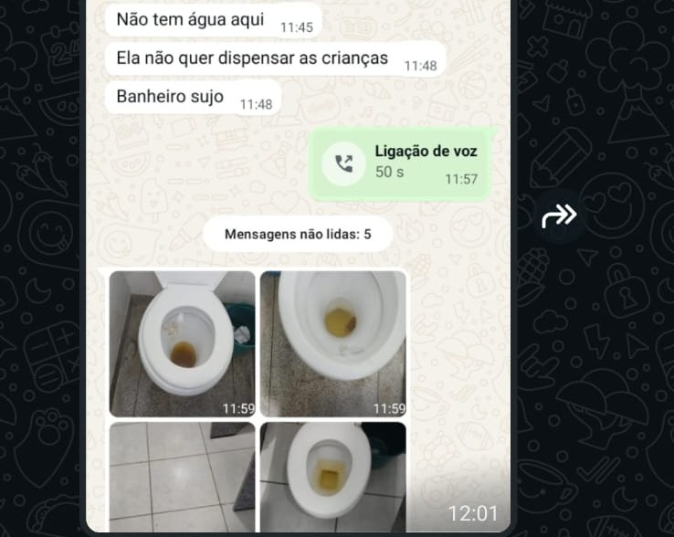 Sobre o diálogo com a equipe da unidade, os pais comunicam que até mesmo as tentativas de contato com a escola não são respondidos, com as mensagens não recebidas por "falta de internet" no momento.